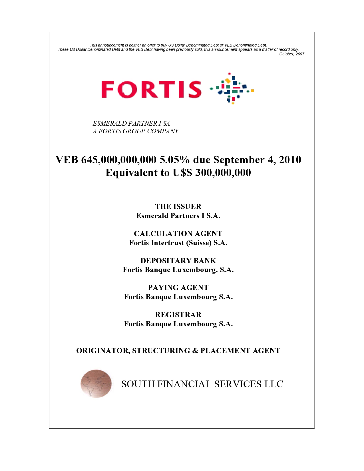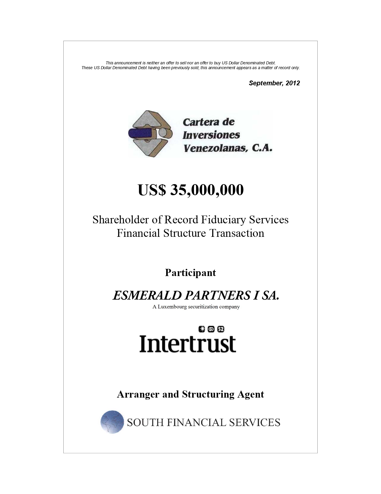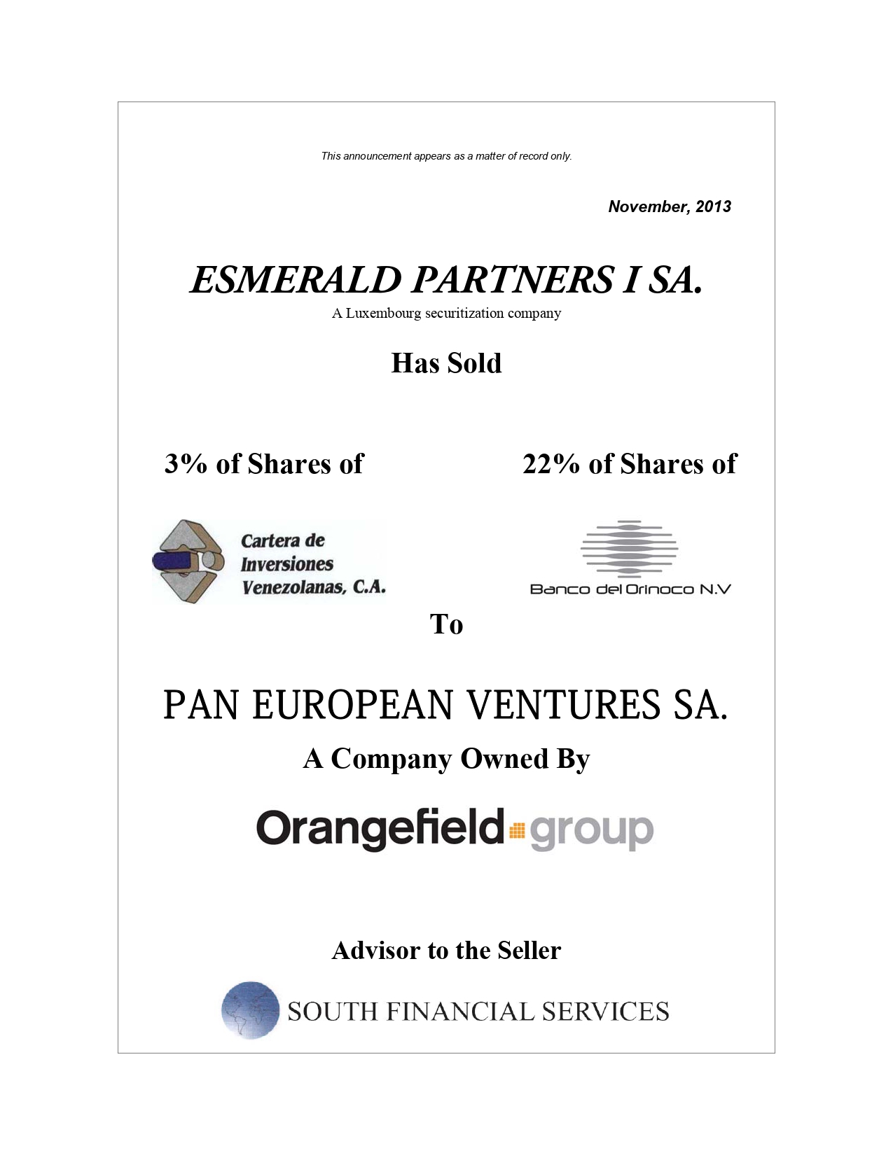 Founded in 1993, South Financial is a fully integrated and independent financial advisory firm whose mission is to select, structure and execute financial business opportunities on behalf of its clients.